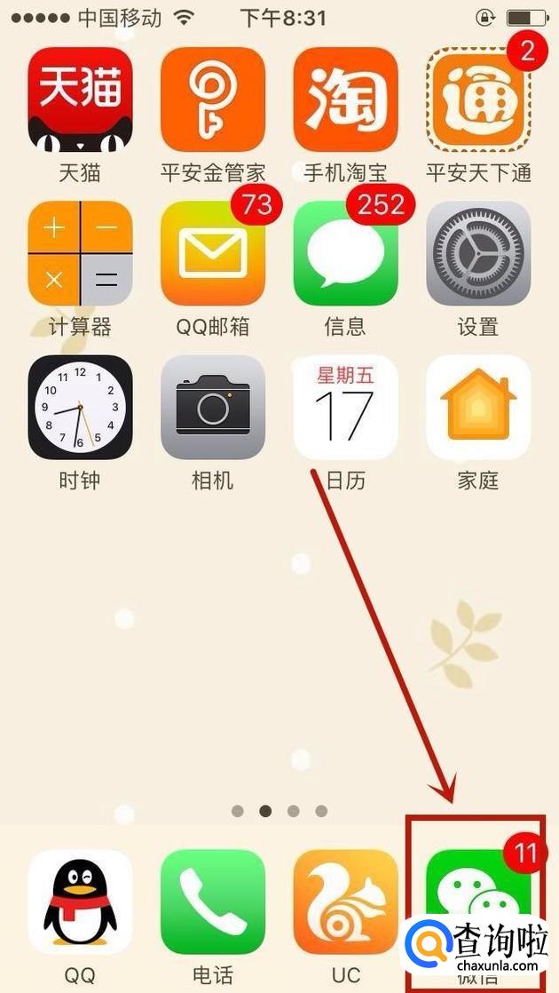 首先在我们的手机桌面上找到微信并点击它,如下图所示。