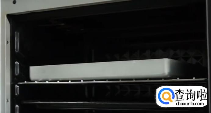 再用甜甜圈模具压出形状之后放进烤箱中层,下层放一盘热水发酵。