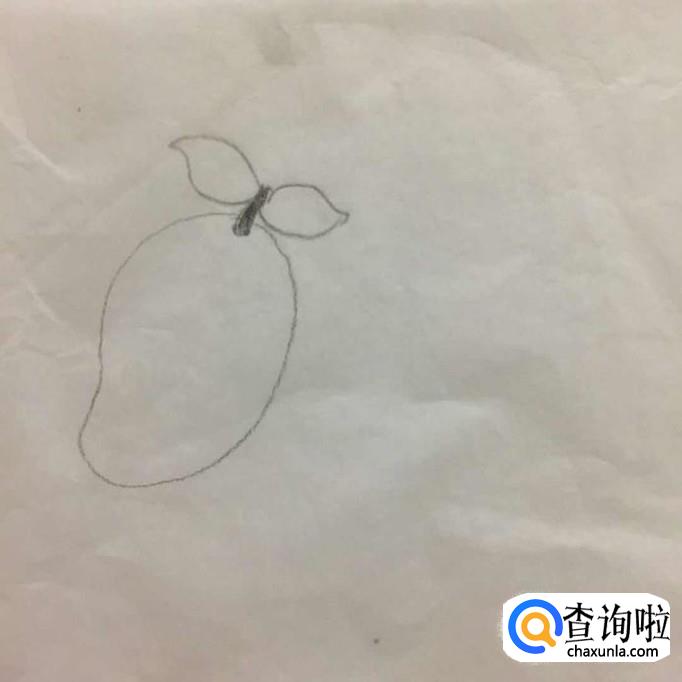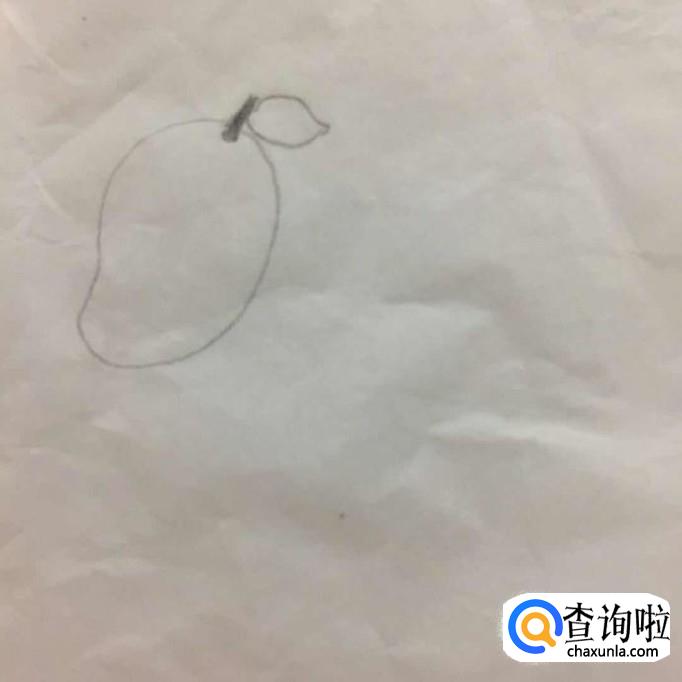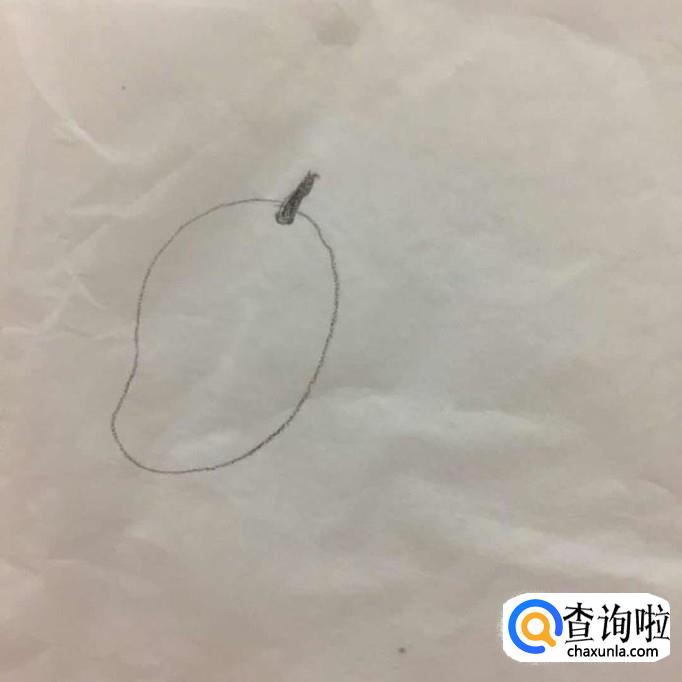 首先在a4纸上用铅笔画出芒果的整体轮廓,如下图所示画这部分的时候不要画得太大,因为它的大小直接决定了画出来的芒果整体的大小。