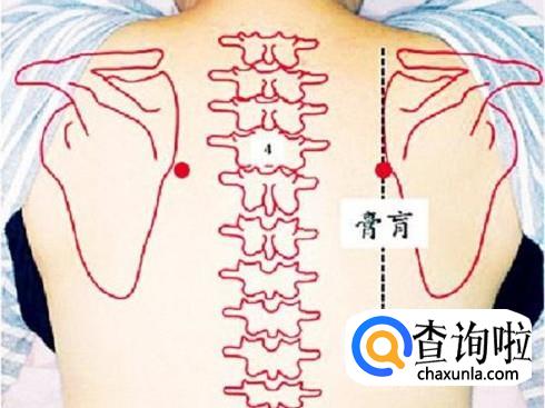 此穴位于位于人体的背部,第四胸椎棘突下,左右四指宽处,本穴为各种慢性虚损性疾病的常用穴,可缓解支气管炎,哮喘,慢性胃炎等病症。