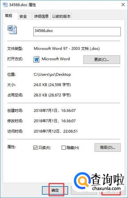最后,我们点击应用和确定,这样我们就将此文件的属性给更改了,这个文件之后只能只读不能被编辑了。
