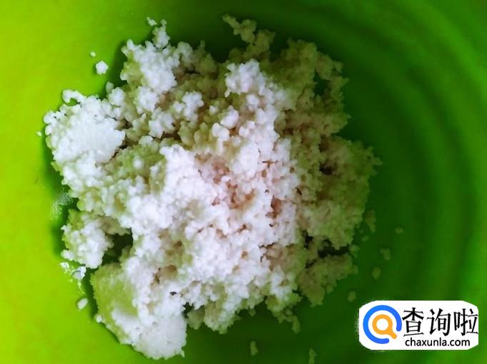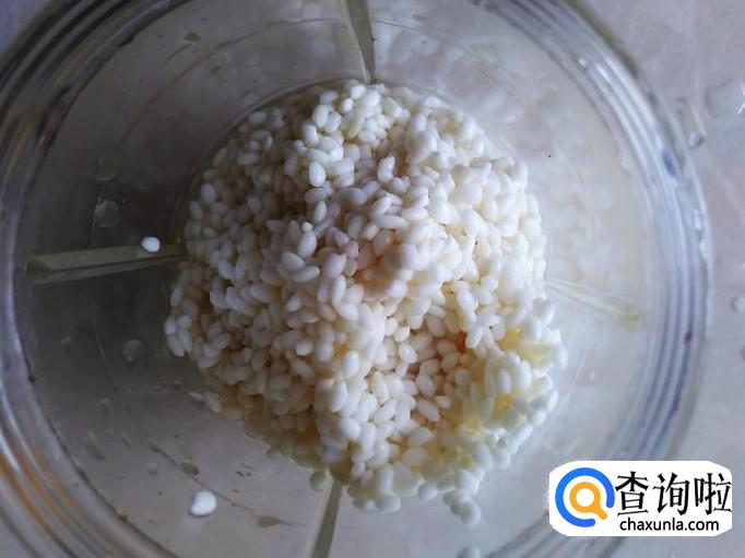 把泡了1晚上的糯米捞上来,放进打粉机打成粗粒。