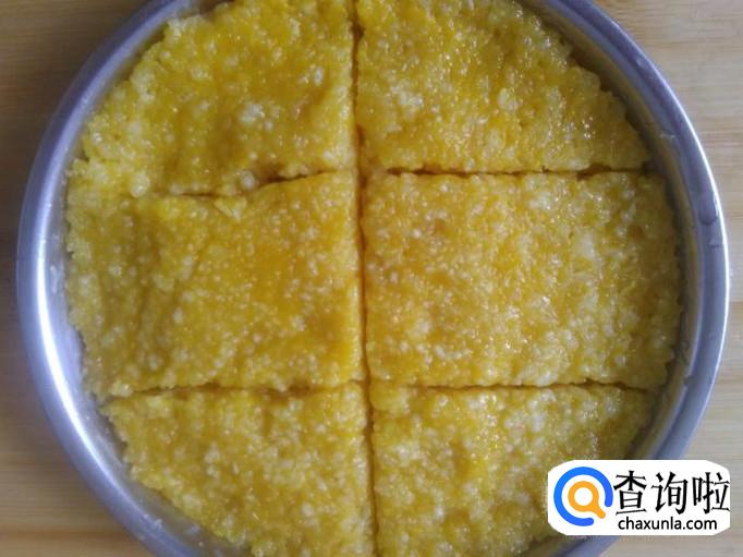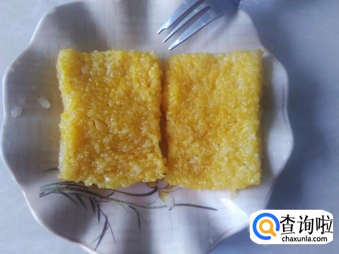 打开盖子,把芒果糯米糕拿出来晾凉,然后放到冰箱。