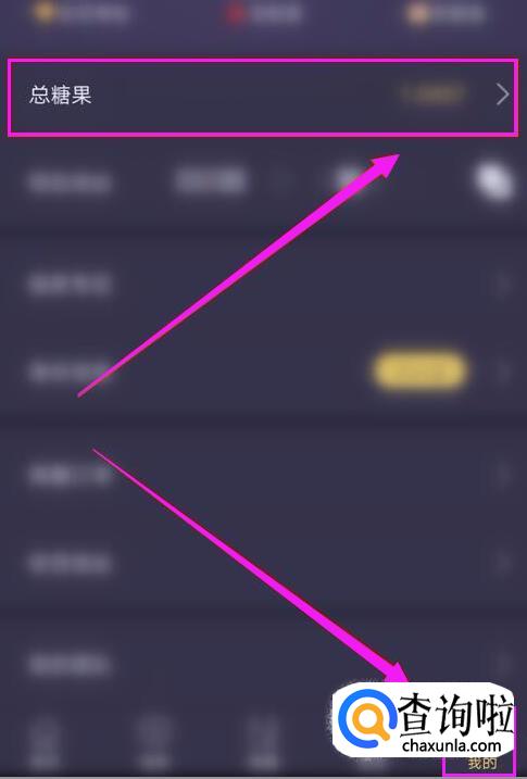 另一种方法,点击下方菜单栏中【我的】,然后找到【总糖果】选项。
