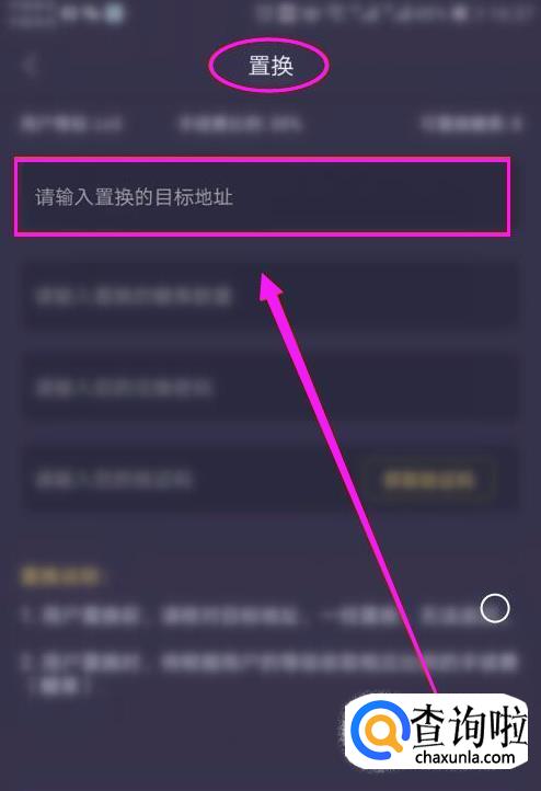 接着,在跳转页面的最上面一栏,输入置换的目标地址,也就是你注册的GHT钱包地址。