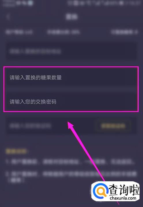 输入完目标地址后,继续输入你想要置换糖果的数量和app的交换密码。