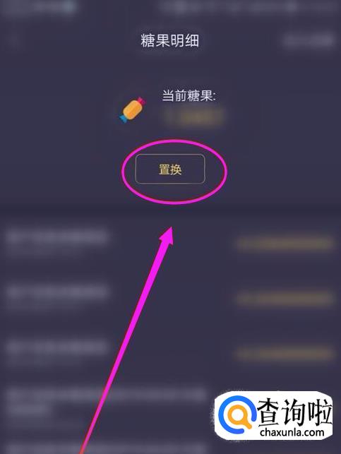 在糖果明细页面中,可以看到你的总糖果数,点击【置换】。