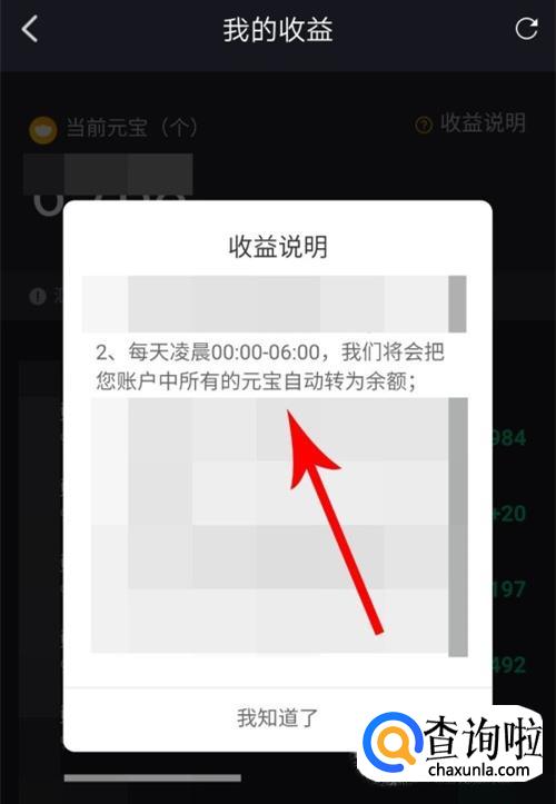 查看获得的元宝数量,点击右上角的“收益说明”。