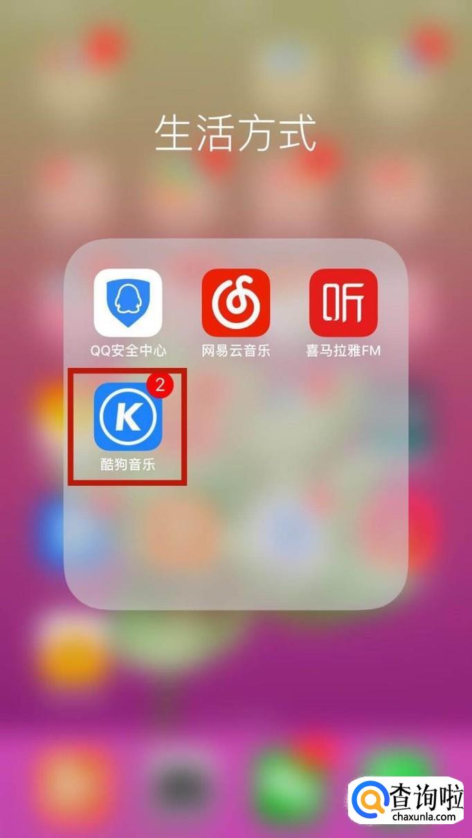 首先在我们的手机桌面上找到酷狗音乐并点击它,如下图所示。