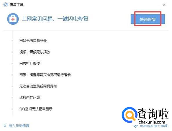 弹出的界面,我们点击快速修复就可以解决掉这个问题了。