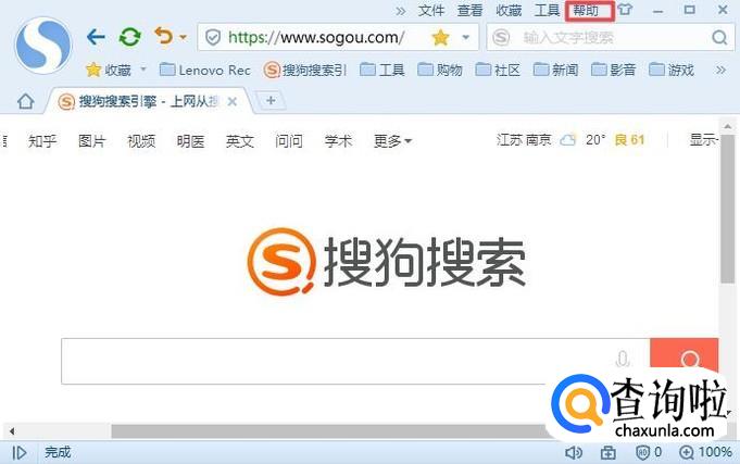 进入浏览器之后,我们点击工具栏中的帮助,如图所示;