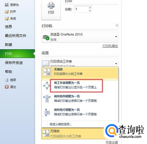 弹出的界面,我们点击无缩放边上的下拉箭头,弹出的界面,我们将工作表调整为一页;