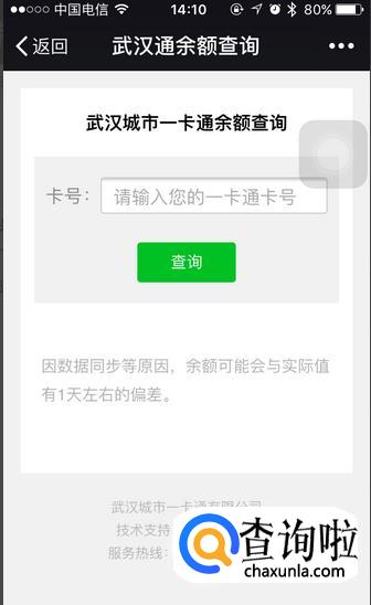 点开武汉通余额查询,会弹出一个武汉城市一卡通余额查询的界面。里头就一个要求输入您的卡号的对话框。