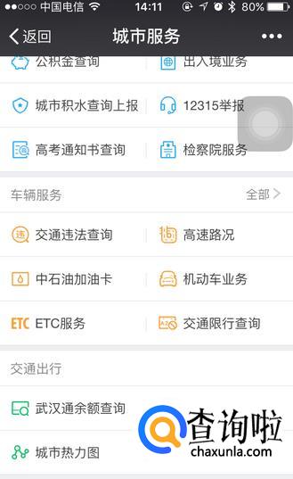 进入城市服务,定位好自己的所在地(小编这里是武汉,所以接下来都以武汉为例)。定位是武汉后,下拉屏幕到最下方。你能看到在交通出行中有一个武汉通余额查询。