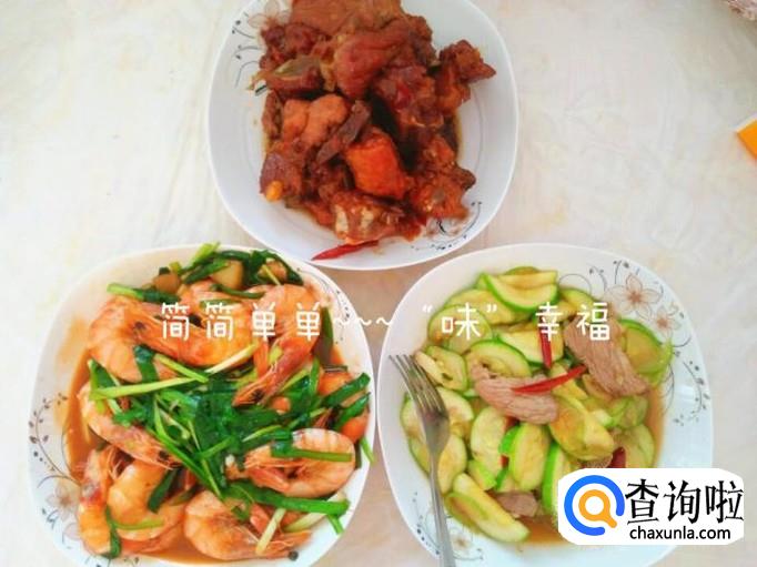 喏,一盘爆炒角瓜肉片做好了,颜色漂亮口味好,而且营养没有流失,搭配上一盘爆炒大虾、糖醋排骨,再来一碗米饭,简简单单的小幸福哦。