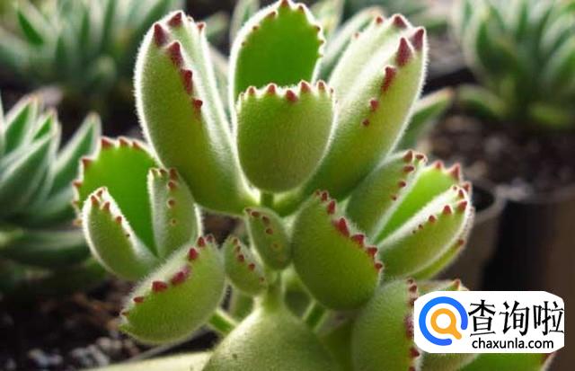 熊童子是多肉的一种,而红爪子是指在强光照射下,熊童子的顶部的凸起会变成红色。