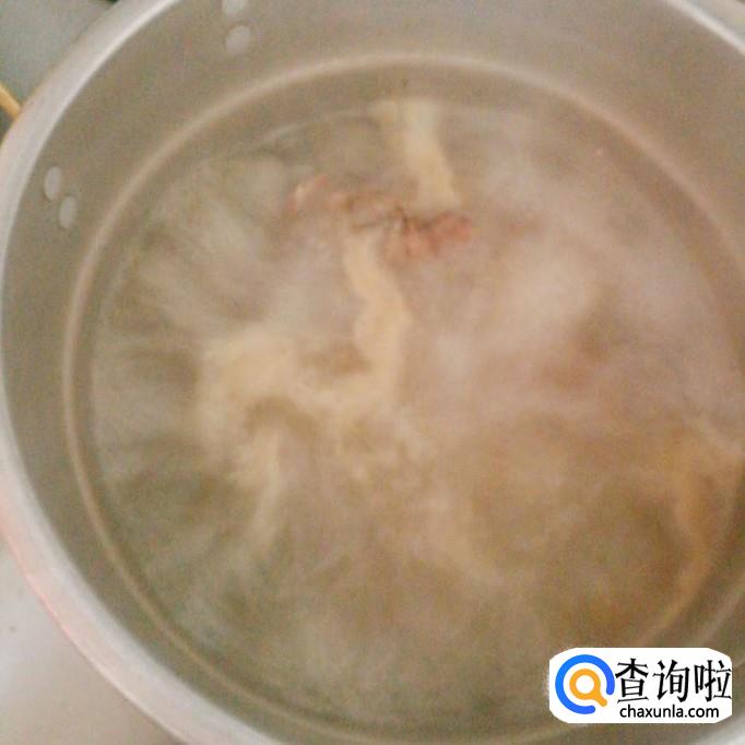 将淖水好的牛尾捞出,并放在清水中冲洗干净。