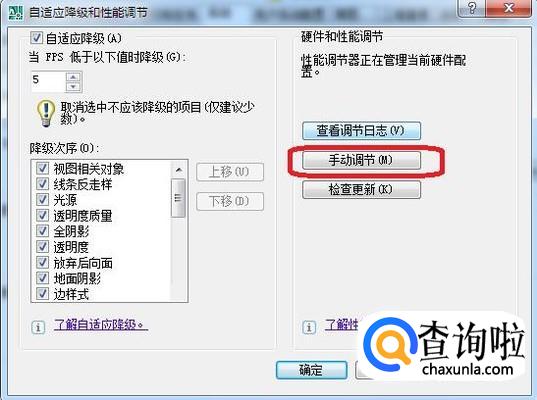 出现下一级面板,我们点击其中的“手动调节”按钮。