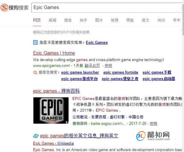 因为该游戏并没有正式上架其他游戏平台,因此只能在官网进行购买。我们可以在搜狗上搜索: Epic Games 。