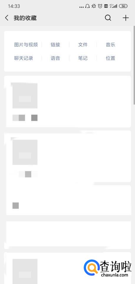 在“收藏”界面,找到右上角的“+”按钮,并点击进入“笔记”界面