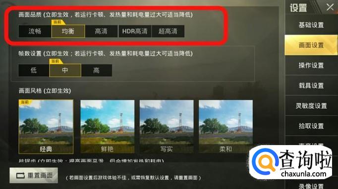 最后屏幕左下方有一个画面重置,点击便可以设置绝地求生新版画质了。