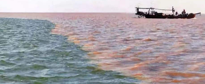 当你乘船出海经过河口附近海域时,往往可以看到海面上有一条不断变动的色线。在靠近河口一侧的水体呈黄褐色,而在向海一侧的水体则呈蓝绿色,泾渭分明,成为河口附近海域特有的一种自然现象。这条分界线是怎样形成的,它又为什么始终在变呢?