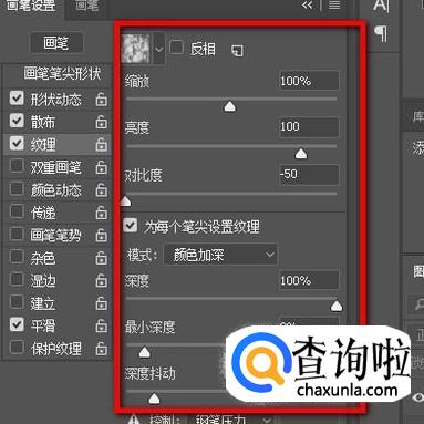 勾选“纹理”并点击一下,打开其设置面板。