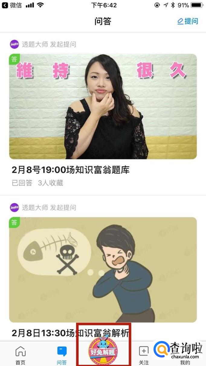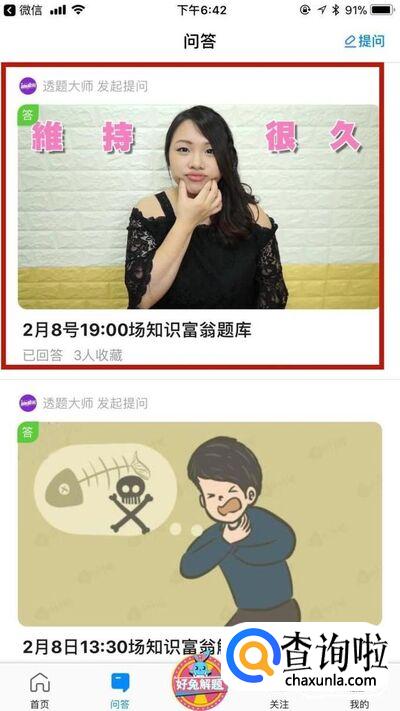 接着点击问答你就可以看到,一些关于好兔视频知识富翁答题赢钱活动的题目的答案线索了。