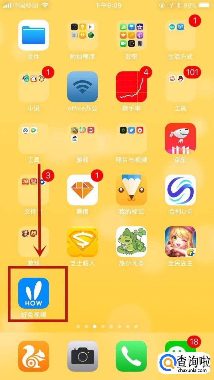 首先在我们的手机桌面上找到好兔视频并点击它,如下图所示。