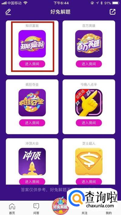 接着点击“知识富翁”活动,如下图所示。