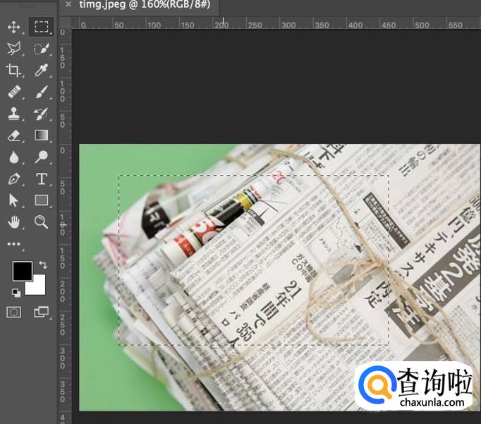 打开图片之后,在左侧工具栏中选择“选框工具”,然后在图片上框选一个选区。