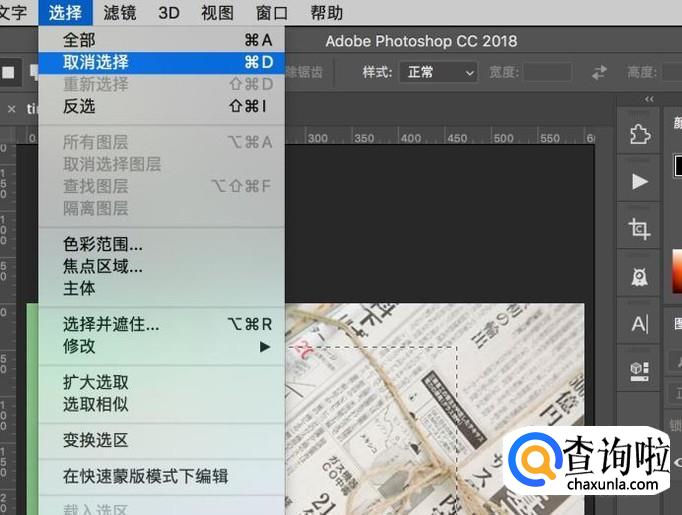 接着就是取消选择的操作了,方法1就是直接右键点击选区,选择“取消选择”即可。