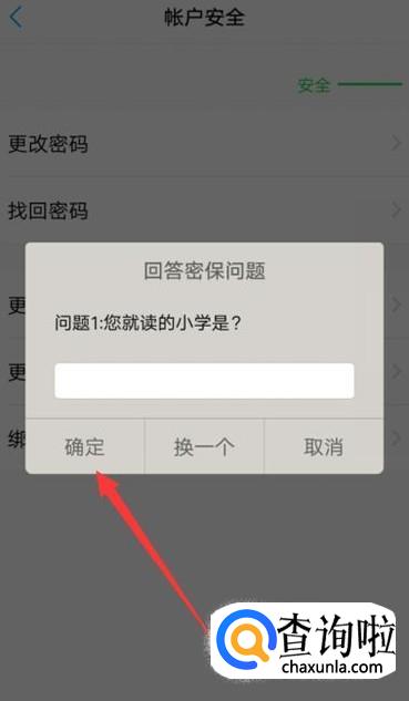 进入之后,回答一个最初设置的密保问题,点击“确定”。
