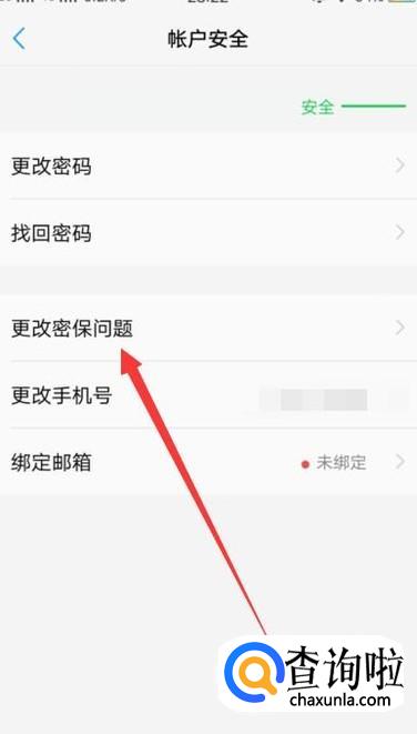进入之后,点击“更改密保问题”,进入下一页面,如图所示。