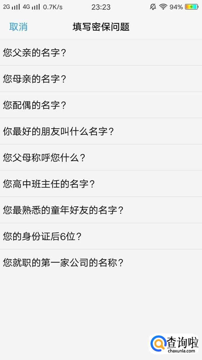 进入下一页面之后,选择一个要设置的问题,如图所示。