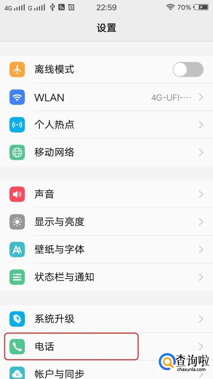 在设置界面找到“电话”,点击一下进入。