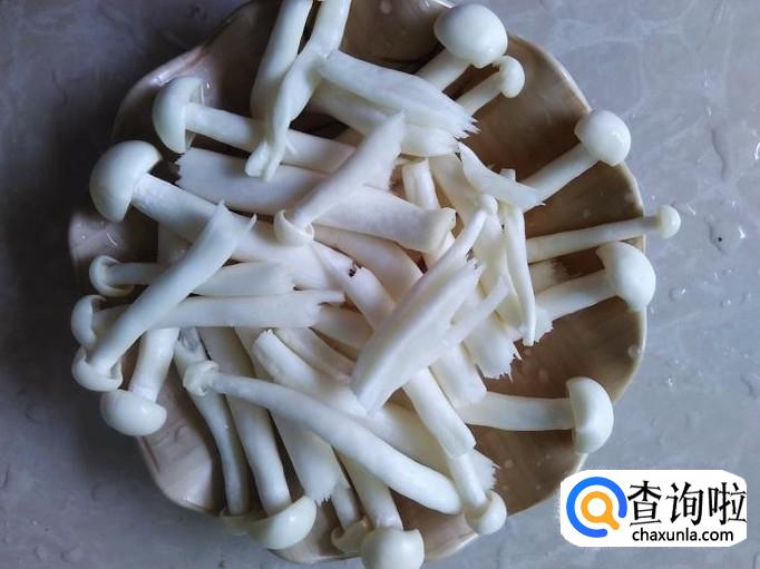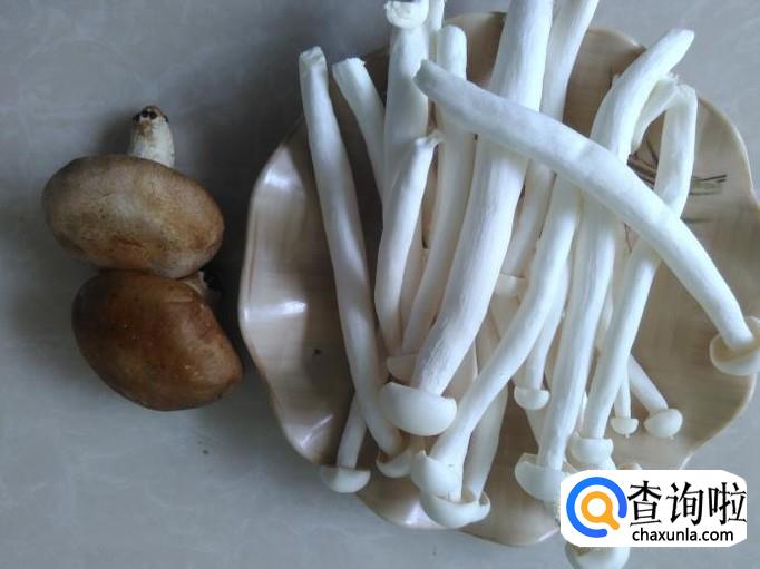 海鲜菇、香菇准备好,然后把海鲜菇折成两段放到水里清洗干净。