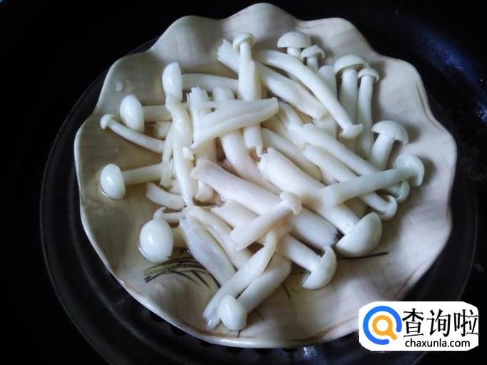 把蒸好的海鲜菇拿出锅来。