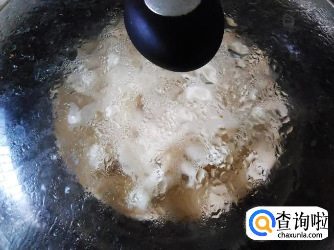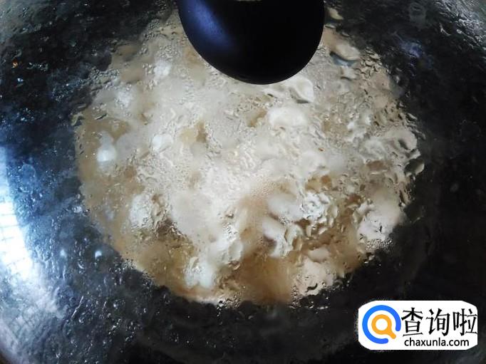然后打开盖子翻炒一下,加适量的水淀粉进去。