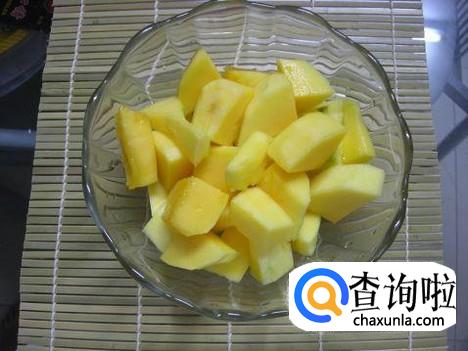 把芒果切小,随便怎么切,大家喜欢就好,切小就可以了。