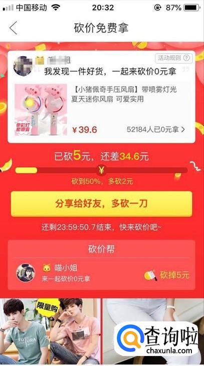 挑选成功后砍价活动就开始啦,分享链接给好友帮忙砍价就完成了。