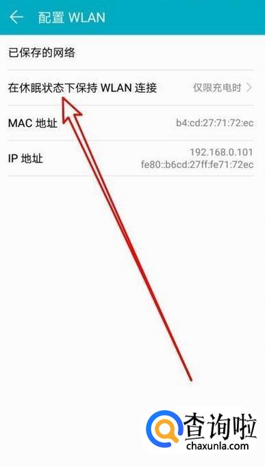 设置手机休眠时仍然连接WIFI。