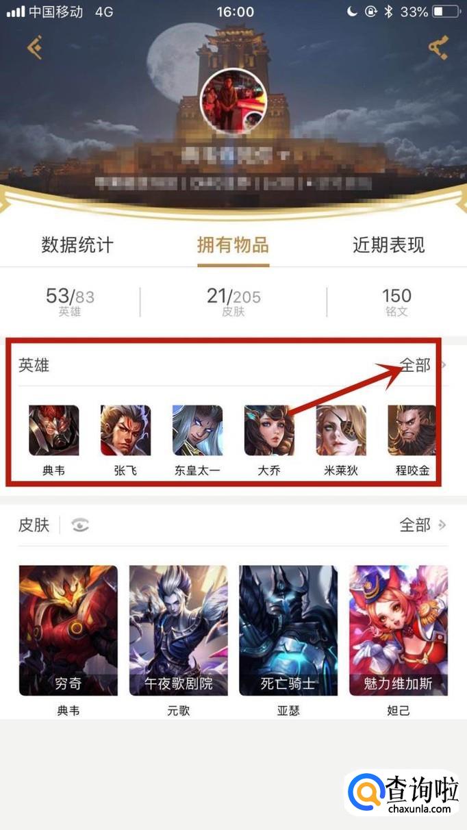 接着点击英雄右侧的全部,如下图所示。