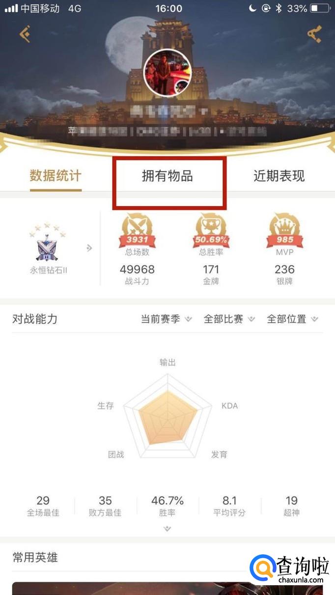 然后点击拥有物品,如下图所示。