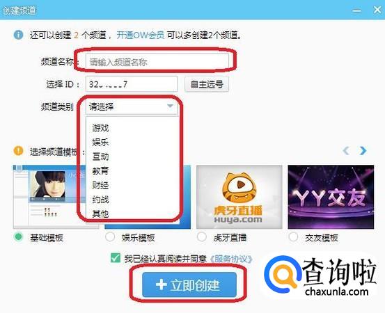 输入频道名称,选择类别,点击“立即创建”,就创建频道成功了,如图所示我创建了一个游戏频道,并进入房间。