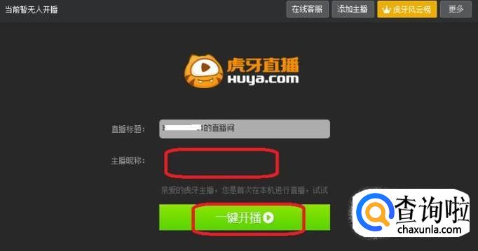 点击之后会加载虎牙直播,输入昵称之后,点击“一键开播”,完成认证之后,就能开播了。
