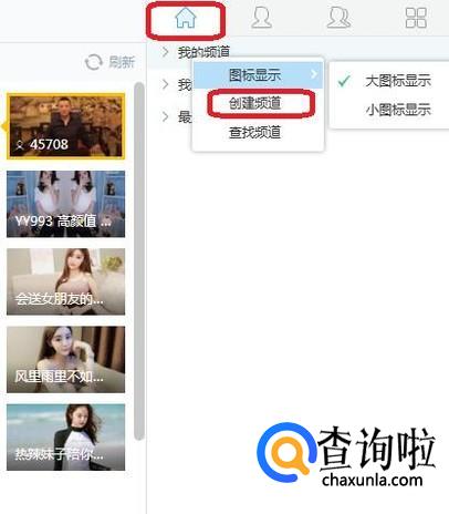 安装完成之后,用账号登录,进入YY界面,如图所示,我们点击右侧栏里的“主页”按钮,弹出我的频道,用右键单击“我的频道”,就可以创建频道了。