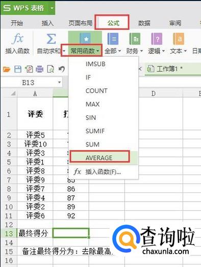 依次点击公式-常用函数-AVERAGE