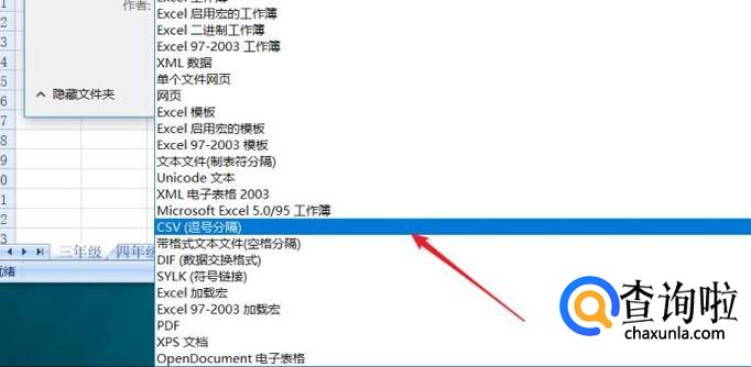 在下拉选项中点击选择“csv"格式。