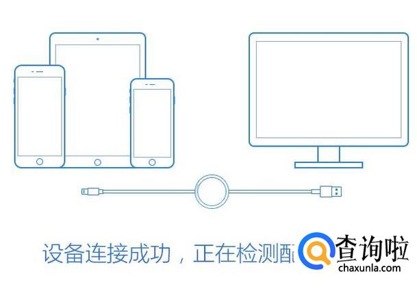 然后根据软件提示用数据线将我们的苹果设备和电脑连接起来,如下图所示。